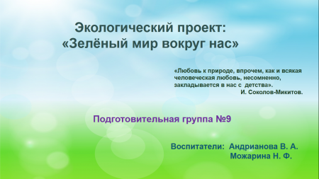 Группа №9 Проект "Зеленый мир вокруг нас"