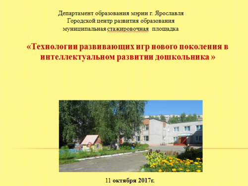 муниципальной стажировочной площадки "Технологии развивающих игр нового поколения в развитии дошкольника". Тема: "Итоговое занятие, презентация авторских проектов, конспектов образовательных ситуаций и использованием развивающих игр".