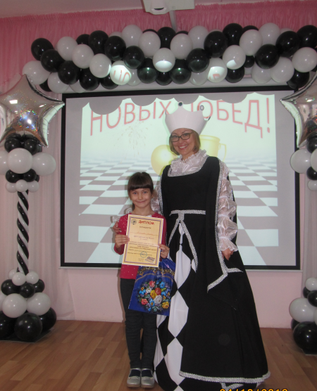 Воспитанница подготовительной группы № 10 и ученик 1 класса школы № 69 приняли участие в квест-игре, посвященной игре в шашки.