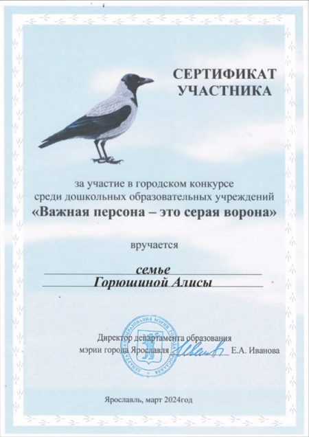 3 место – семья Ивановых, МДОУ «Детский сад № 142» (вторая младшая группа № 6)