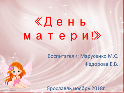 27 ноября в спортивном зале спорткомплекса «Каучук» состоялись соревнования, посвященные Дню матери, среди дошкольных учреждений Заволжского района. Наш детский сад представляла команда подготовительных групп №6, №7, №13. Возглавили команду инструктор по физкультуре Котова Евгения Александровна и воспитатель группы №6 Марусенко Мария Сергеевна. В тяжёлой борьбе наша команда заняла 2-е место. Из нашей группы в команде были София Емелина, Роман Слесарев, Анна Смекалова.