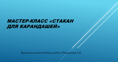 Мастер-класс показала воспитатель группы № 6. Творческая мастерская «Сюрприз», воспитатель Федорова Е.В.